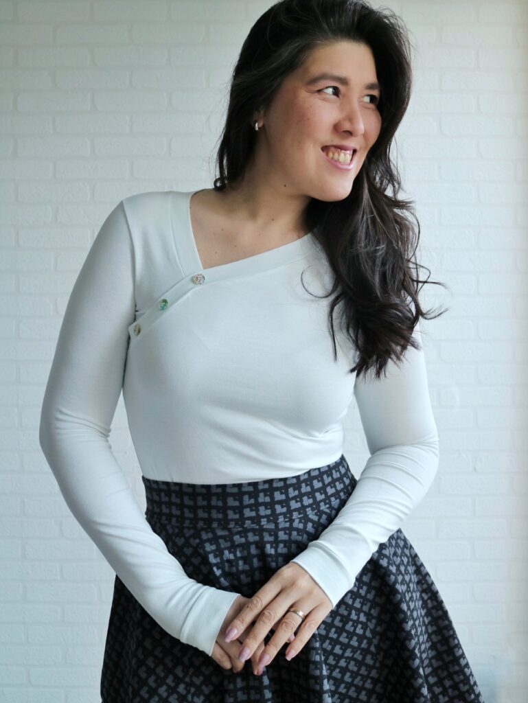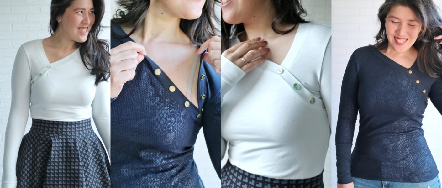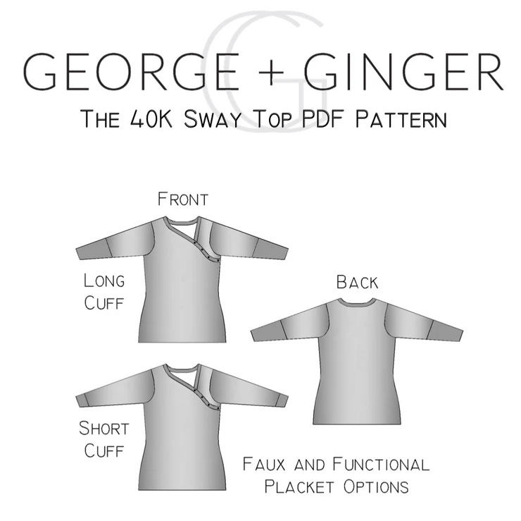 G+G has added another freebie to celebrate our Facebook group hitting 40,000 members! The 40K Sway Top is a unique, asymmetric top with a faux or functional placket swoop neckline. It also includes two different long sleeve cuff options and a flattering, fitted silhouette. The perfect top for fall sewing!