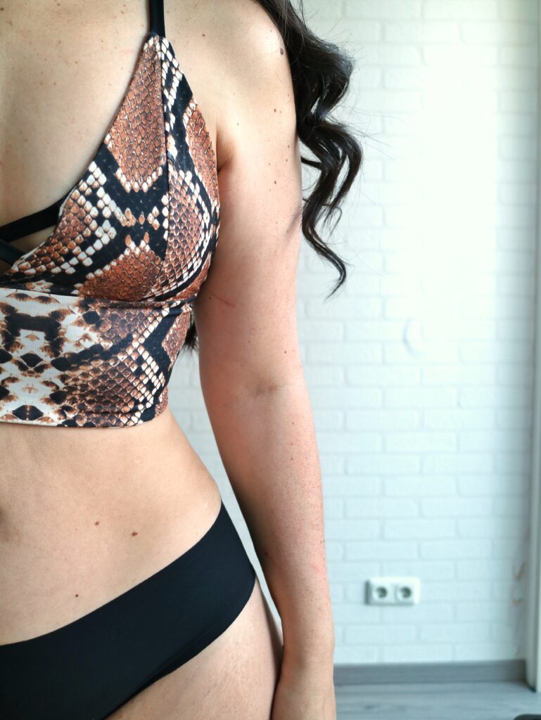 This one is the most open one. I feels like a litte more relaxed fit than the other two for the fact that the cups aren’t connected to each other. On solution for that are the center straps. They add a very cute detail to the bralette and gives it a bit more stability.