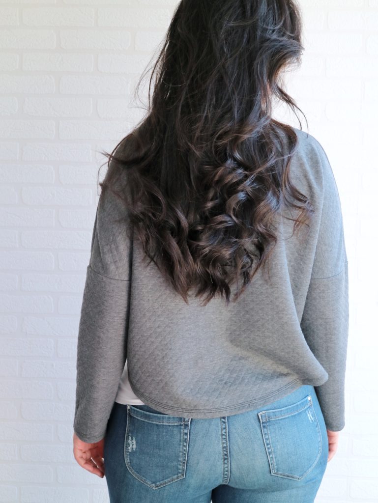 All I’ll do is point to the sweater… while holding a glass of something on my other hand! Ha!