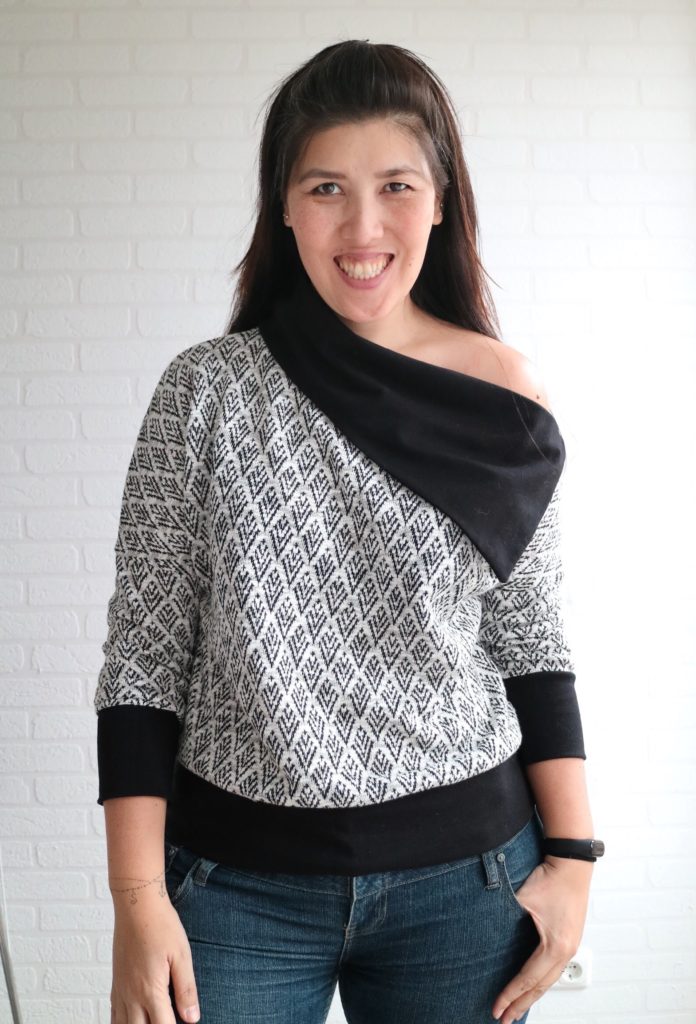 Fabric I used was a medium weight sweater knit I purchased at the Stoffen Spektakel, French Terry for the collar and Ribbing (boordstof) for the cuffs.