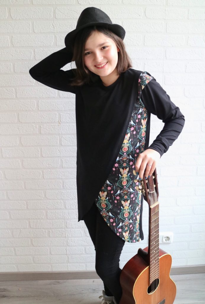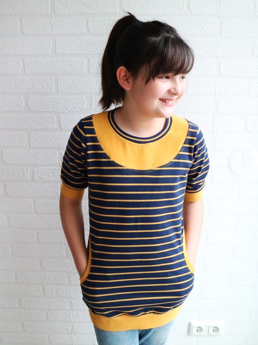 I used ribbing for the neck and armbands because I ran out of fabric… squeezed it to the last cm! 😀