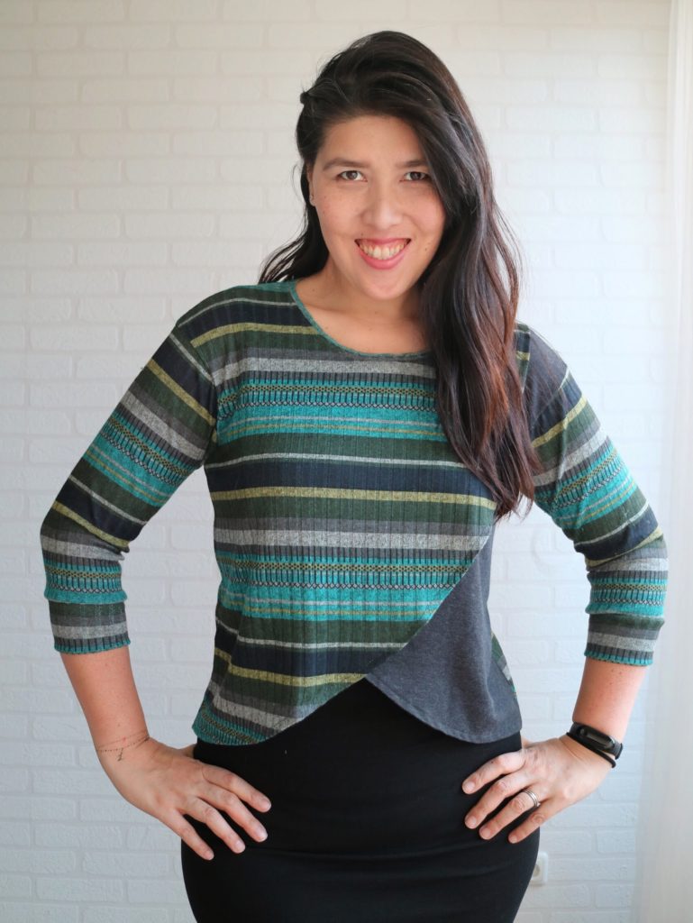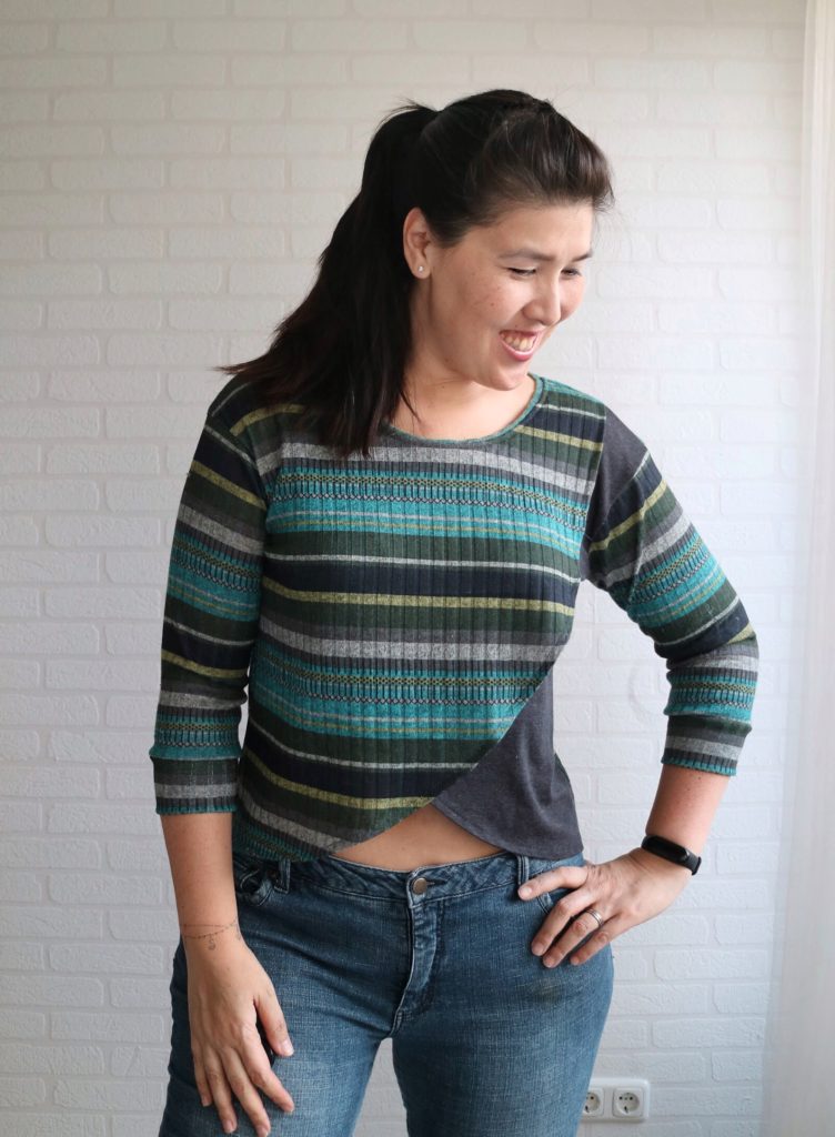 I used a plain grey sweater knit for the bottom panel as an accent. Another fun trait of the pattern, it’s so easy to customize and have some fun with it.