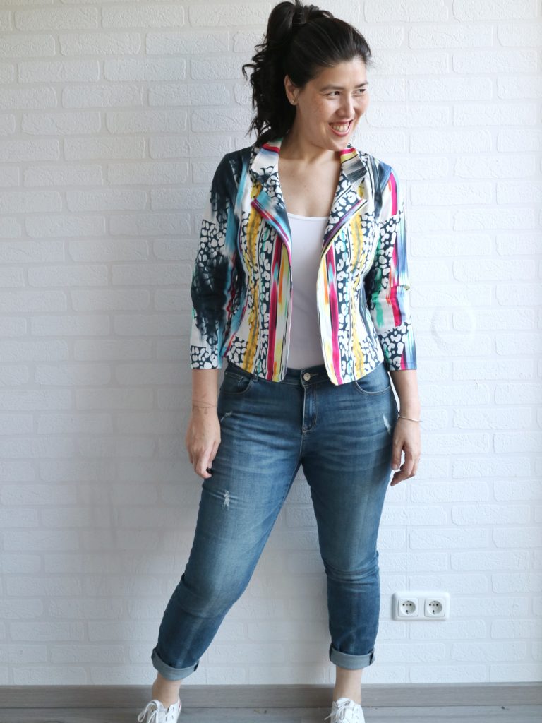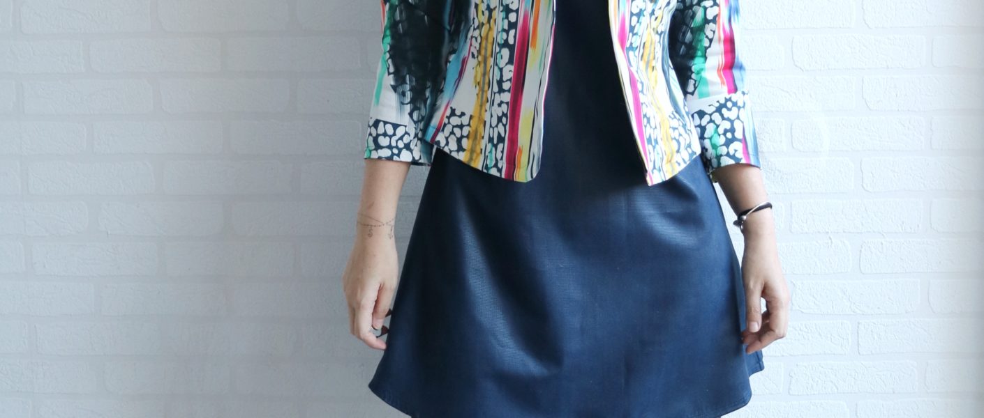 My day to day life is pretty informal, and that reflects the way I dress. I’m pretty laid back and casual (unless I’m feeling extra on any particular day ha!)… so I ended up picking the Giverney, the more traditional blazer-look and decided to use a funky fabric to give it a “twist”.