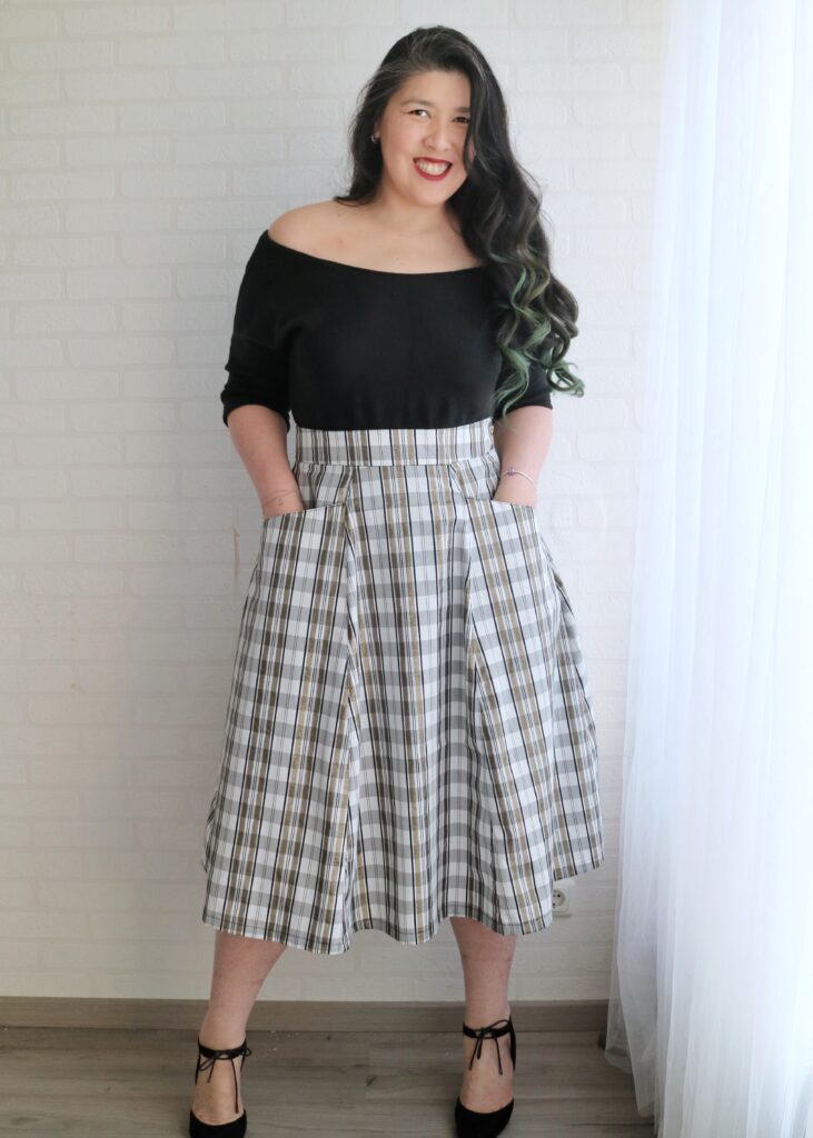 The skirt is fully lined and I added elastic to the top of the waistband for extra hold.