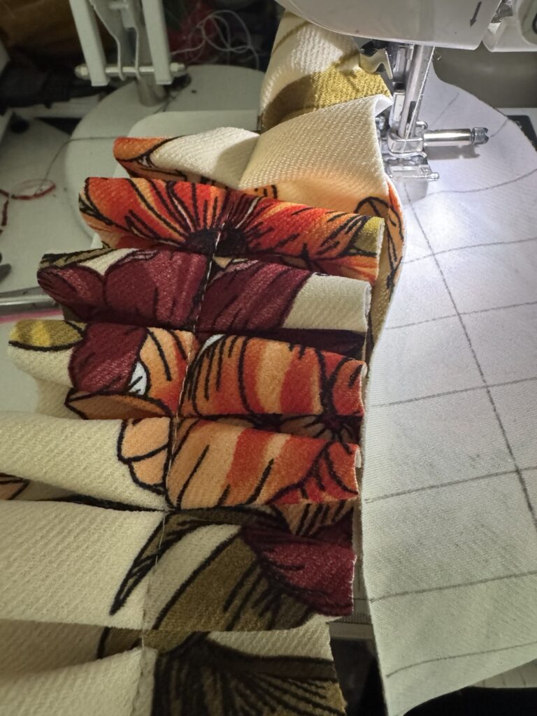 To recreate the pleated shoulder from the bikini, I used a twill scuba—structured enough to hold its shape without flopping, and it doesn’t fray. Win-win. Not gonna lie… sewing the pleats was a bit of a pain in the behind, but so worth it.