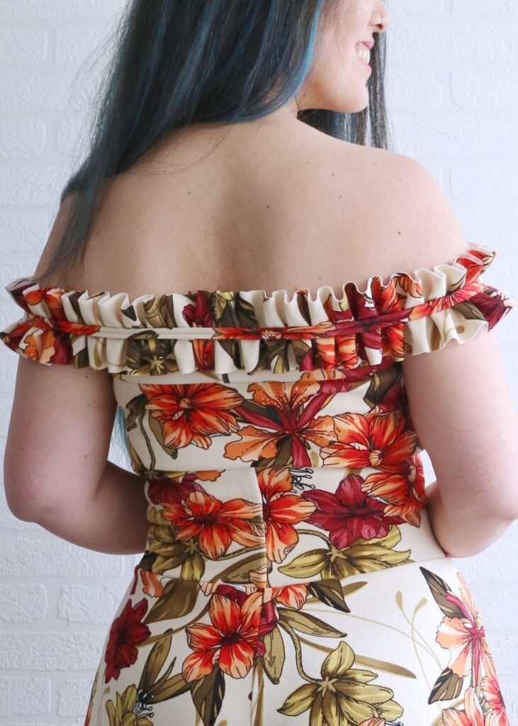One thing that I changed from the original inspo is that I made the ruffles go all across the back, instead of making it an adjustable strap.