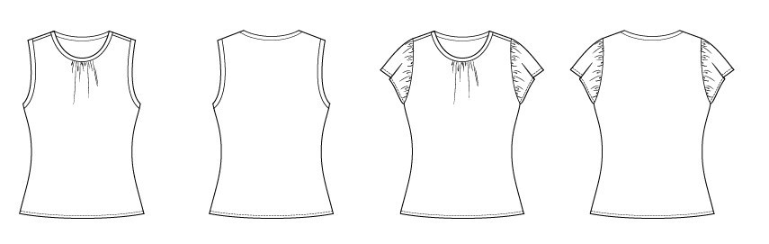The neckline gathering sets the top apart from your regular run-of-the-mill knit tank. Isidro can be made sleeveless or with gathered butterfly sleeves.