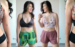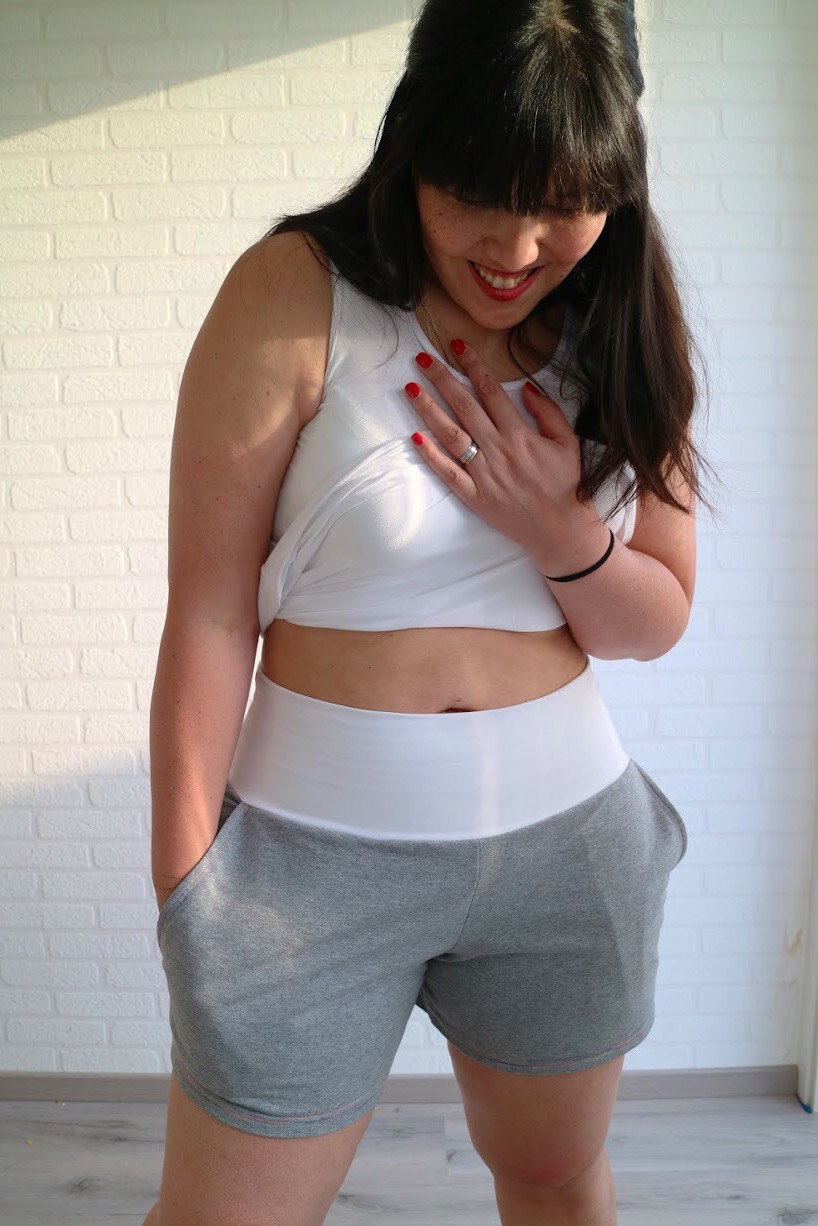 I wanted the straps to be thin and needed them to be quite elastic so I’d still be able to pull it up over my hips, so I chose to just cut 1/2″ strips of my fabric and pull at the ends to get them to form a “string”. After sewing all straps in place I continued with the pattern instructions.