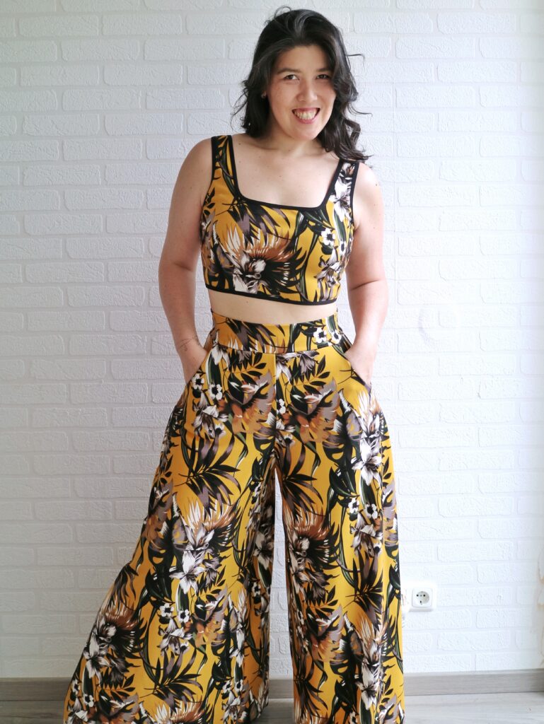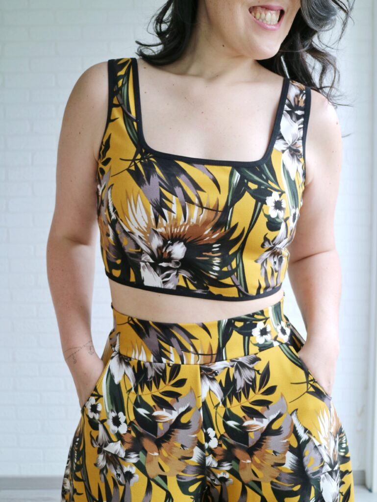 I managed to squeeze this entire set out of 2m of fabric with some expert level game of pattern tetris. lol It was so close that I didn’t have enough fabric to hem the top so I just finished it with some binding and it turned out pretty cute. 😀