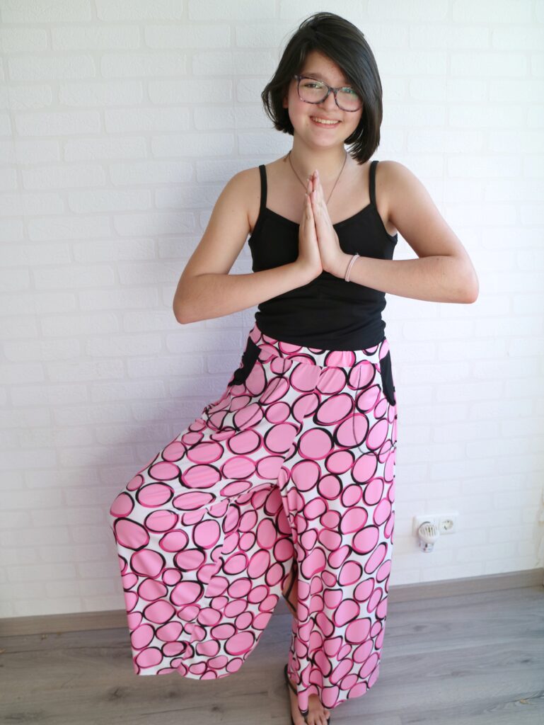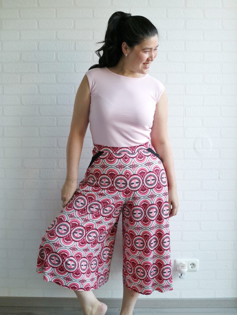 The one thing that I’ll adjust is to add elastic to the waistband. The fabric isn’t stable enough to securely hold the pants in place without it.