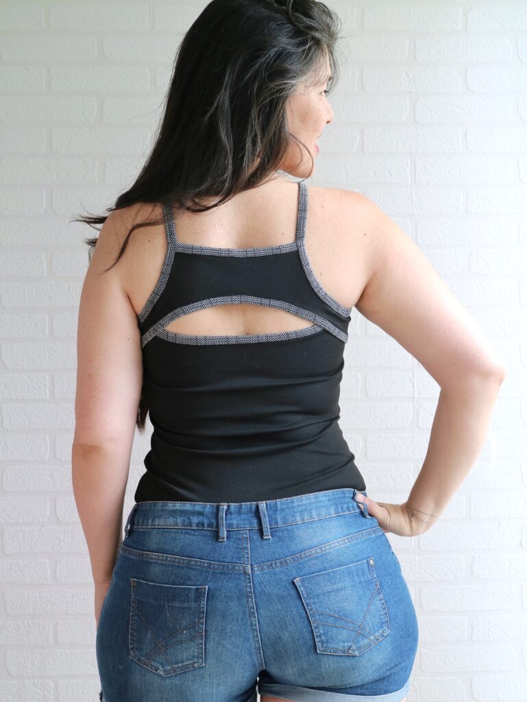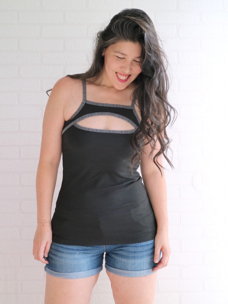 I basically added a shelf bra, but without the elastic band around the torso. My B cup doesn’t really need the support of the elastic, it’s more for the extra coverage.