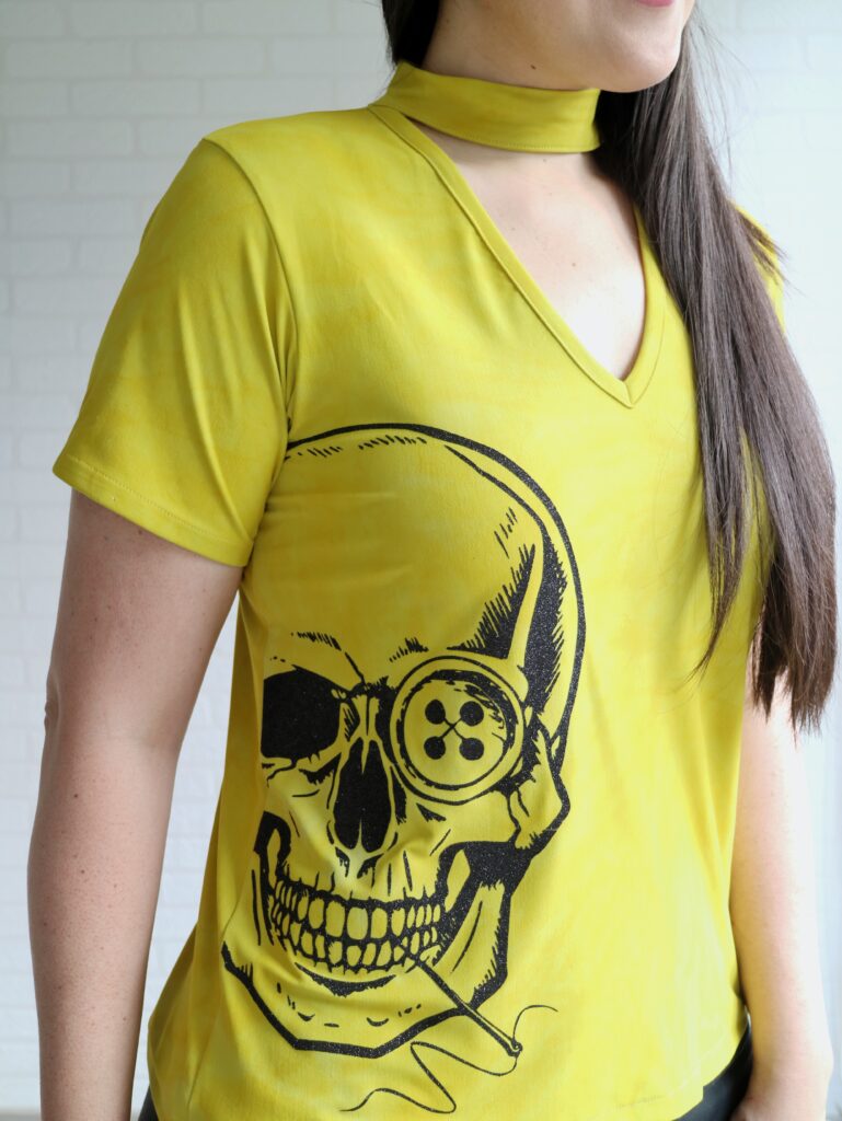 I decided to take the tee a notch higher and added the awesome Sewing Skull to it.