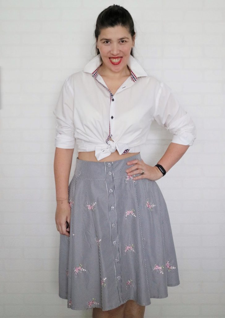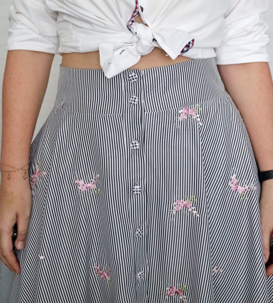 This one is technically more of a mash than a hack though… I used the skirt of the Satara, with the waistband of the Crop Dress to make a lovely button skirt!