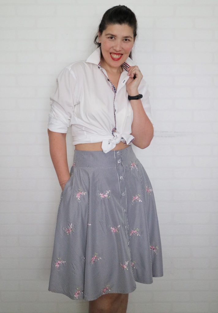 I’d like to point out that my waist is 4 sizes smaller than my hips and I didn’t grade the pattern. So if you’re a straight size, your skirt will likely be a bit fuller than this one.