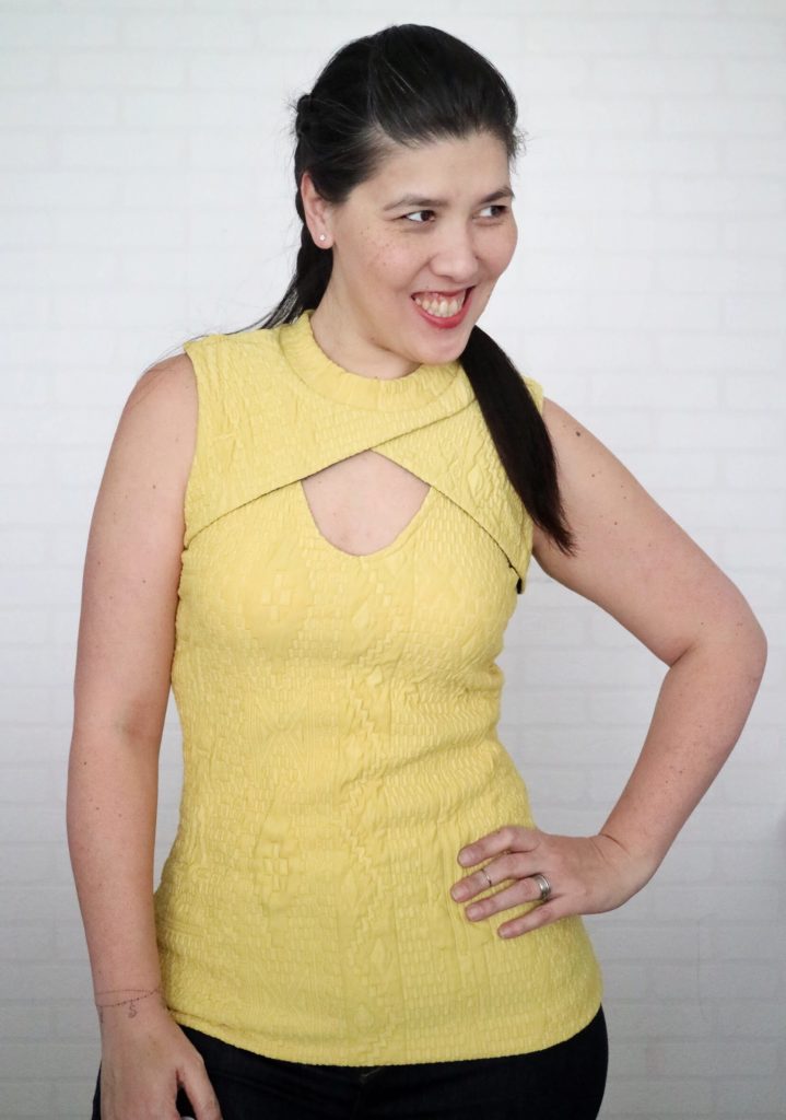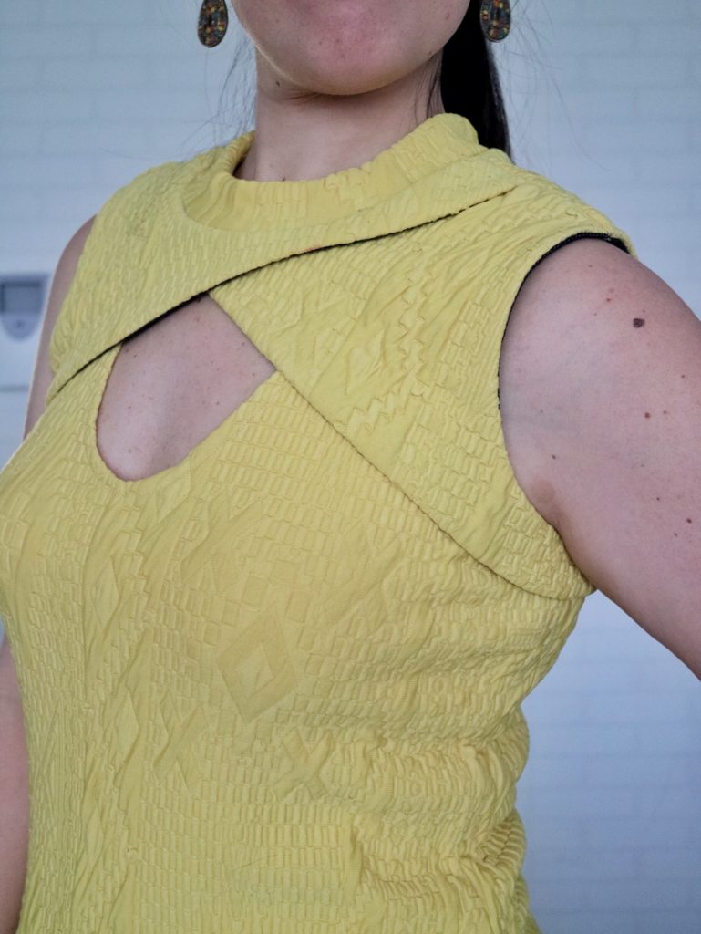 It really turned out for the best, because I think that this color goes perfectly well with the sleeveless and I even love the rounded edge of the miss-formed diamond peekaboo! 😉