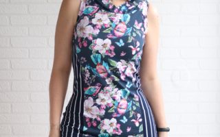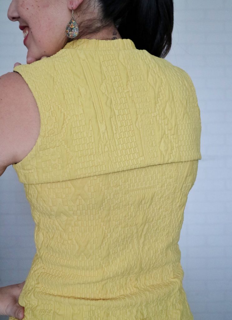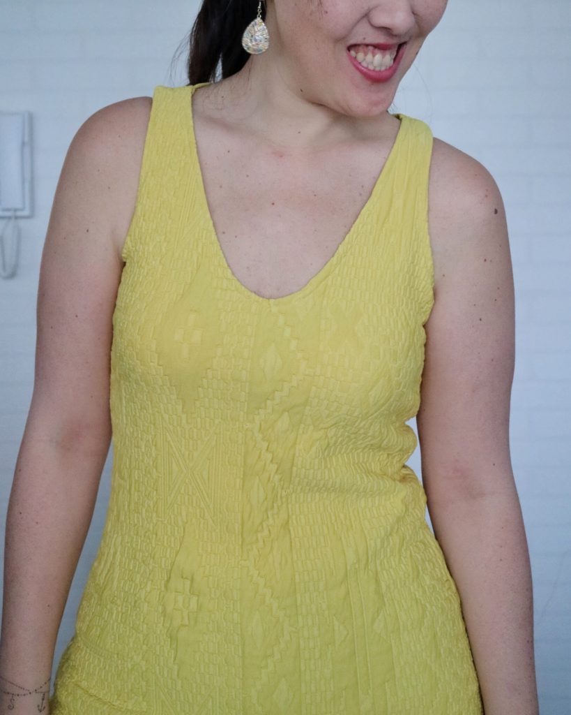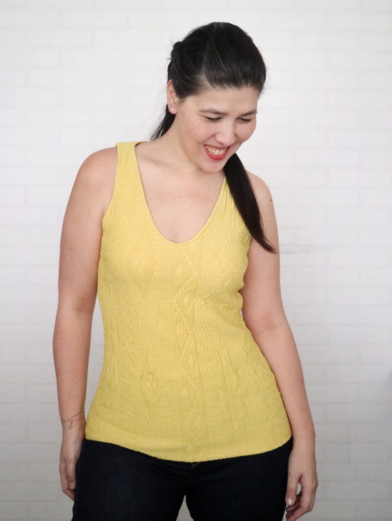 The top doesn’t have bands. I serged the neckline and armscye edges, folded and stitched. That made the V more like a U, but I’m not mad at it! 😉