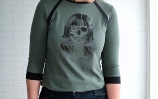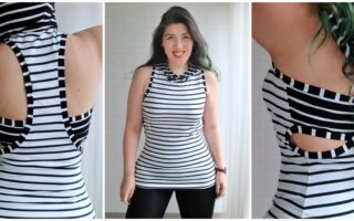 The top doesn’t have bands. I serged the neckline and armscye edges, folded and stitched. That made the V more like a U, but I’m not mad at it! 😉