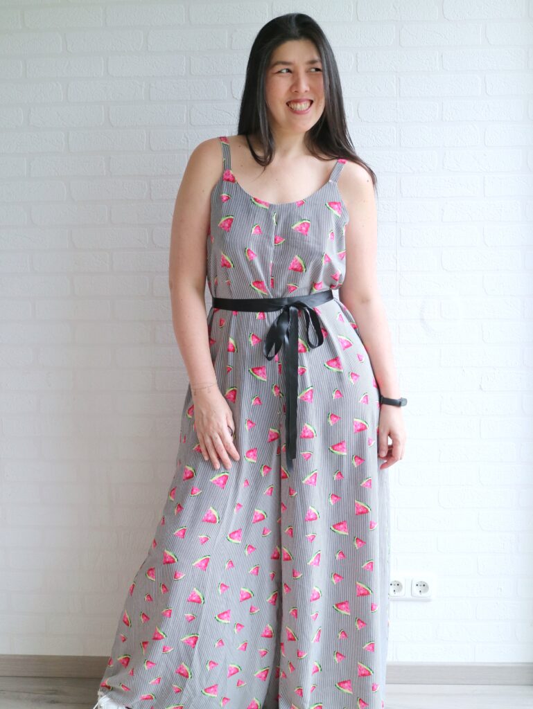 The SeaChange Jumpsuit & Playsuit (Romper) pdf sewing pattern is a pull-on design, flared from underarm to the hem, eliminating the need for a zip. Enjoy its free flowing goodness or add shaping with the ties or sash. Choose the straps that suit you & add pockets if you like.
