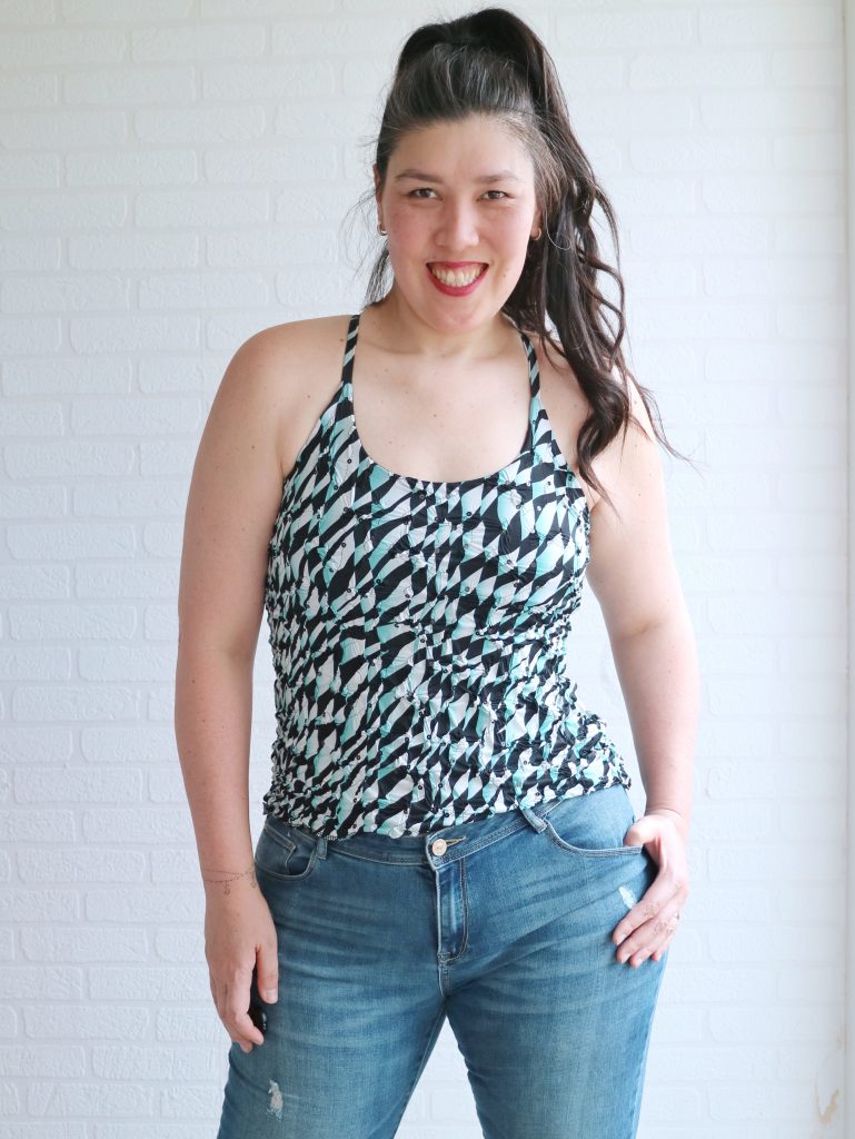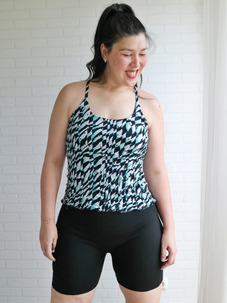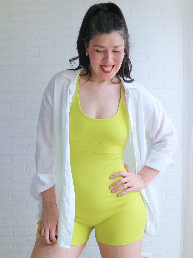 And if you’re wondering… yes, you do need to lower the whole thing for bathroom breaks. Just like with a one-piece swimsuit (If that’s a deal-breaker for you, it’s super easy to make the shorts as separates 😉).