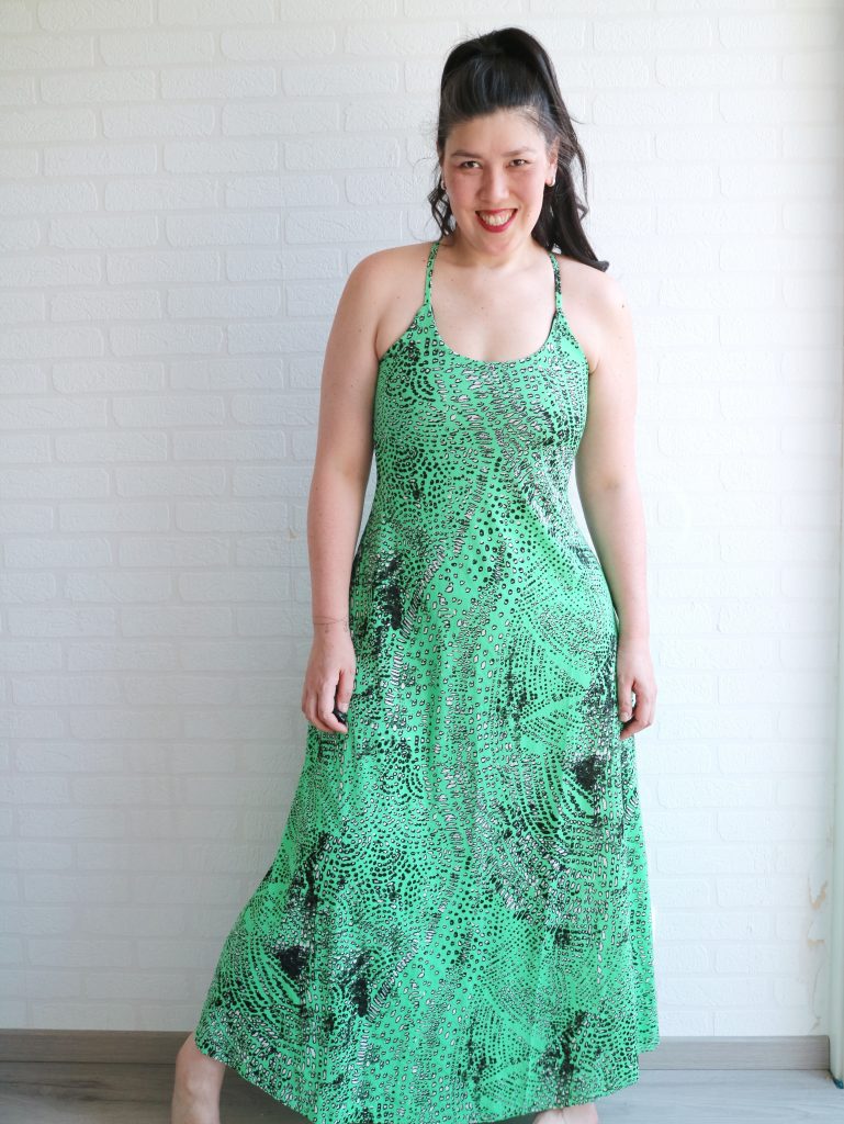 Once again, I left the shorts out. I feel that for the maxi it would be a bit more impractical. Plus, this fabric also doesn’t have the necessary percentage of stretch.