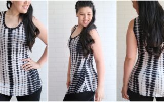 I finished the bottom edge with elastic and left the V-neck raw because the athletic doesn’t roll and I like the wide neck look.