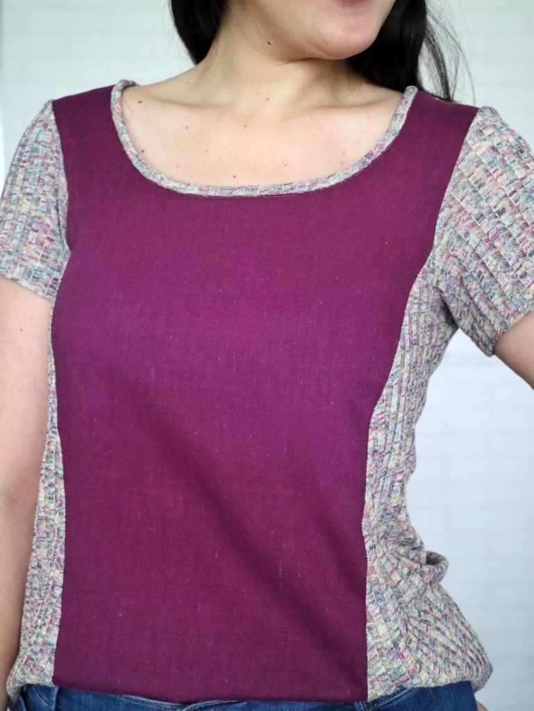 For this first one I choose to make the short sleeve top, using linen for the front panel and sweater knit for the rest.