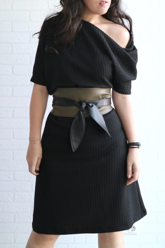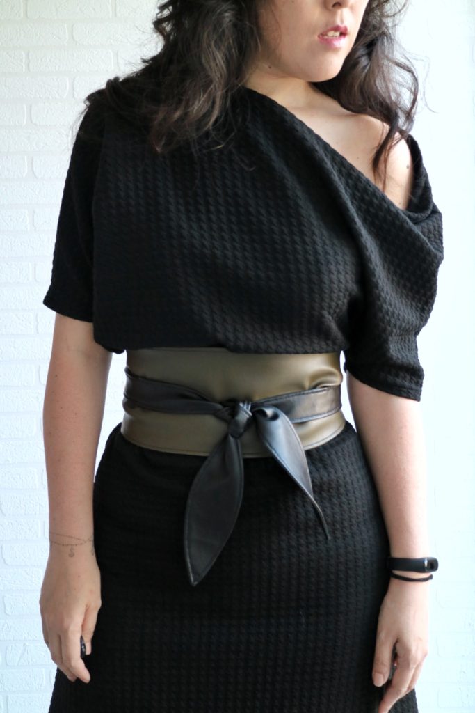 For the belt, I used faux leather and chose the options wide belt with leaf tie.