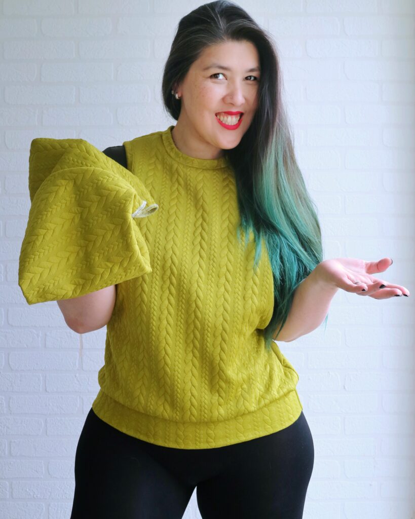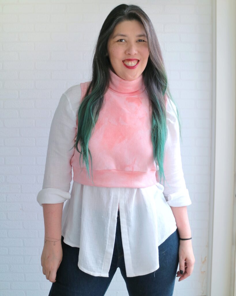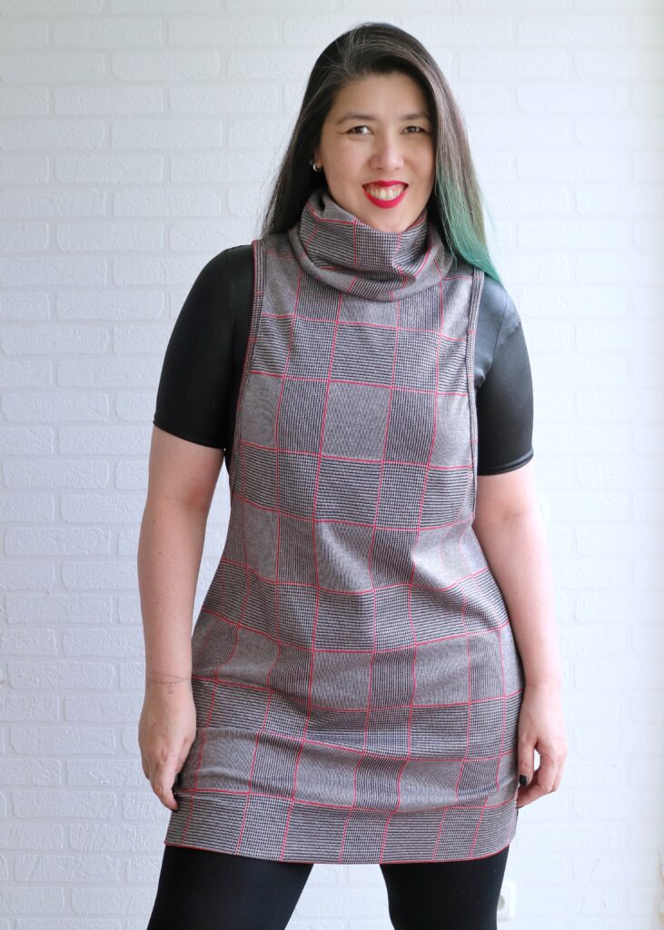 REGULAR LENGTH, SCOOP ARMSCYE, HIDDEN POCKETS, COWL NECK WITH A SNEAKY HACK!