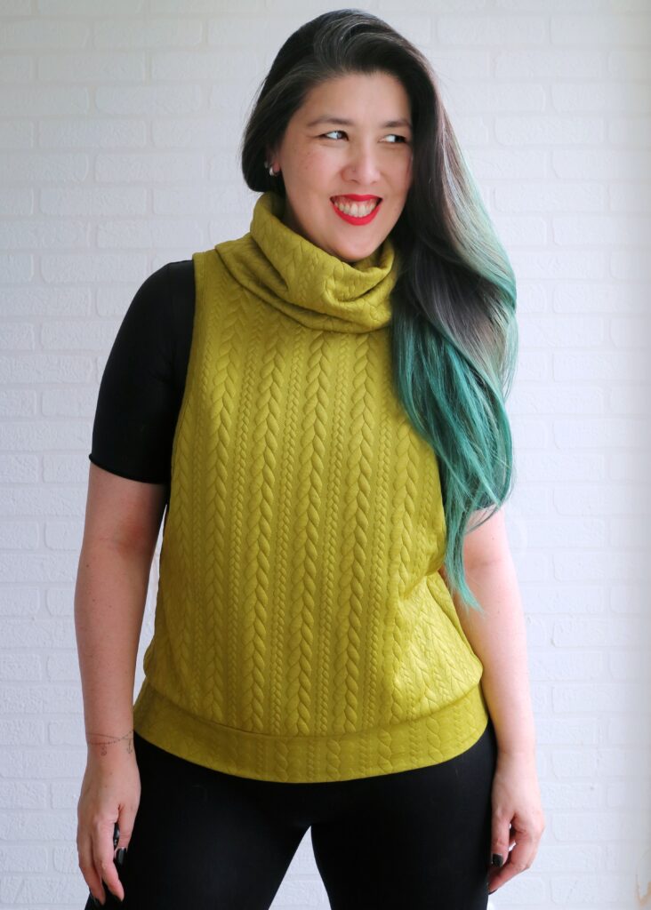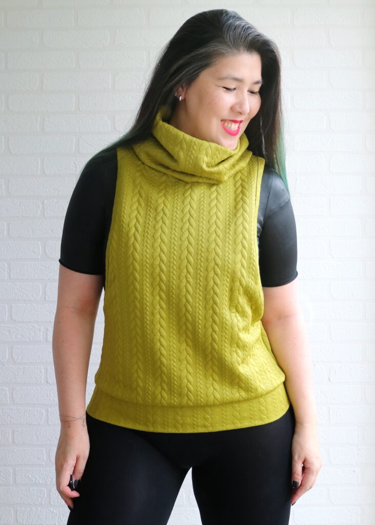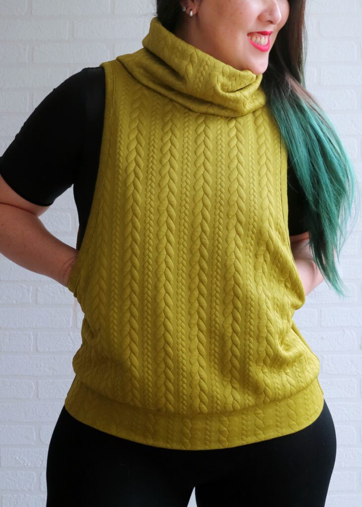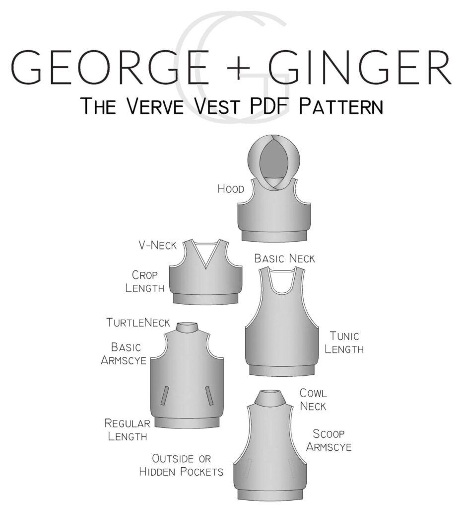 The Verve Vest is a must-have layering piece–perfect for fall! Choose from cropped, regular or tunic lengths/regular or scooped armscyes/basic, v-neck, turtleneck, cowl neck or hood options. Plus, optional hidden or visible welt pockets!