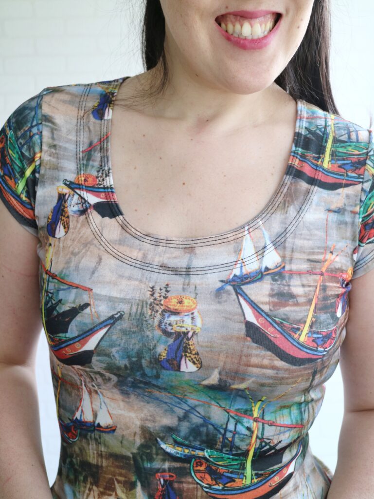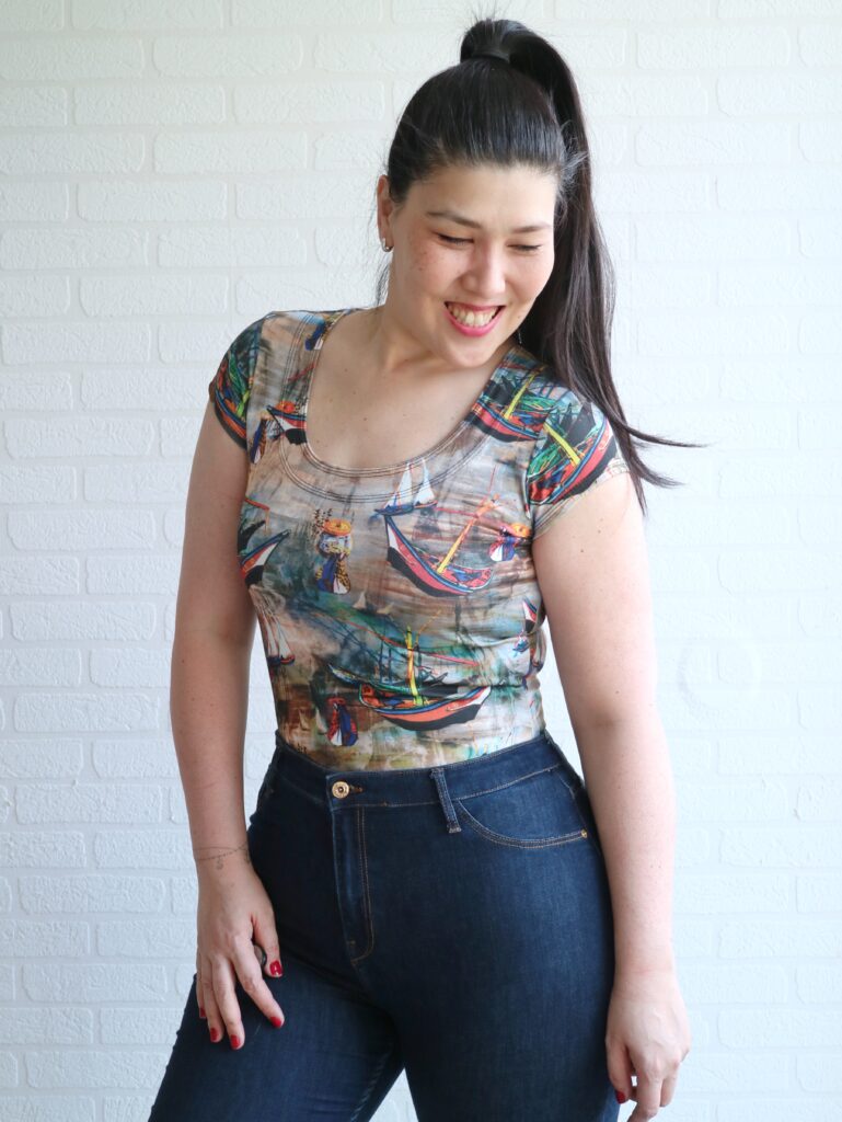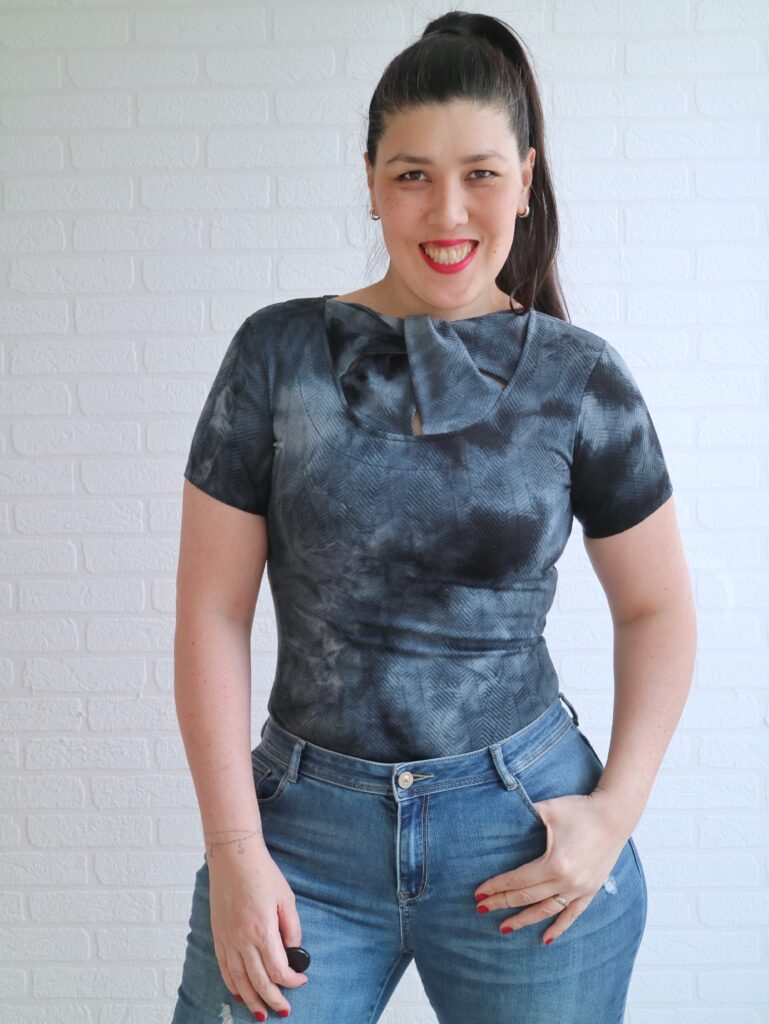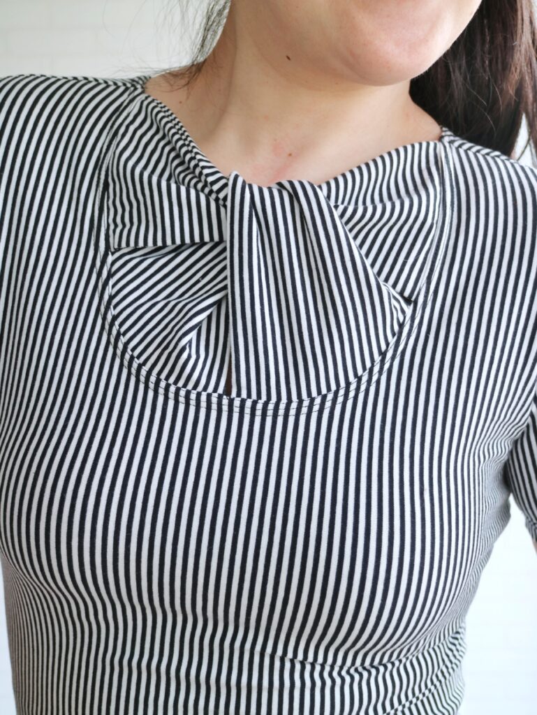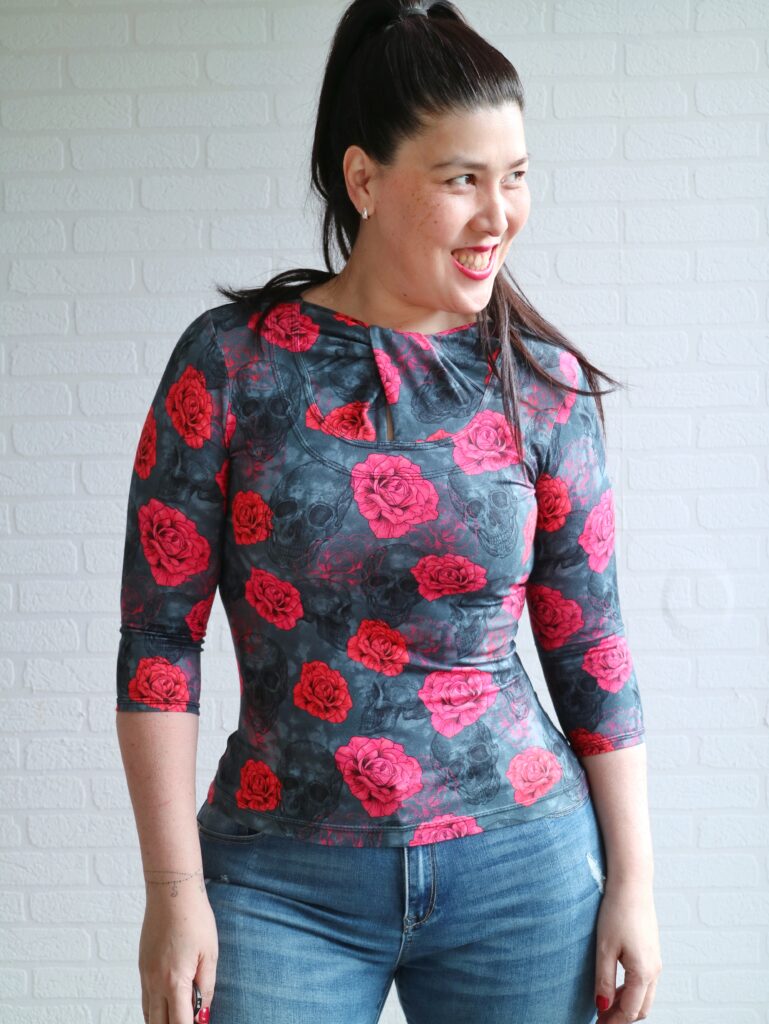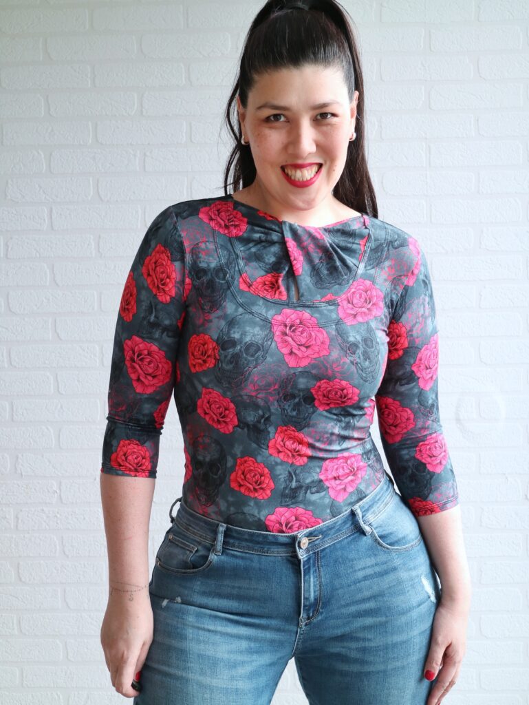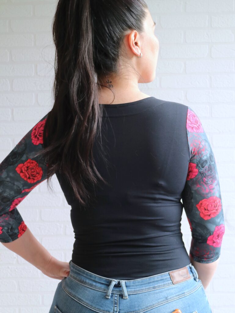 This top is drafted to hit at the hips but if you prefer your shirts to be a bit shorter, that’s a very easy adjustment to make. I do love the original lenght, but as I said… only a small piece of fabric, so shorter top it is haha