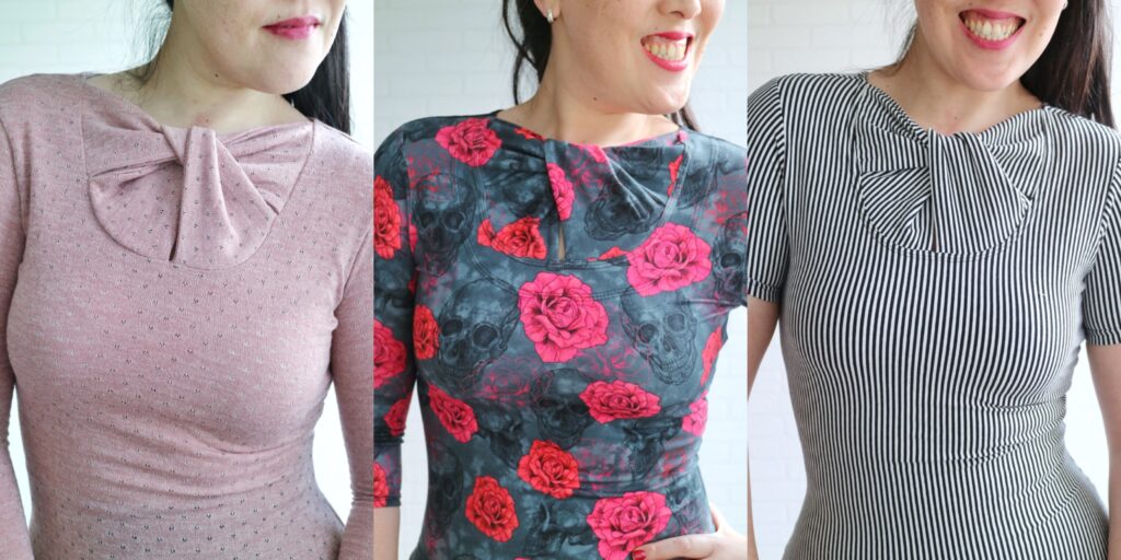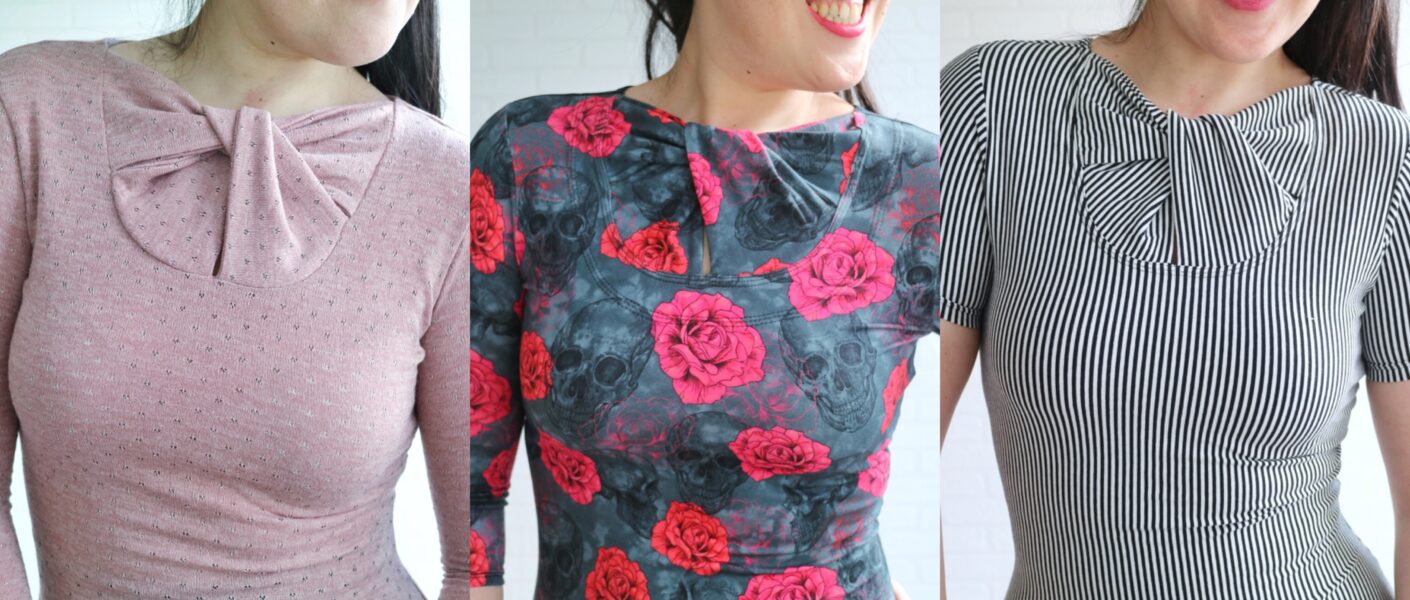 This fancy looking top is drafted for knits and comes with 3 sleeve options, short, 3/4 and long.